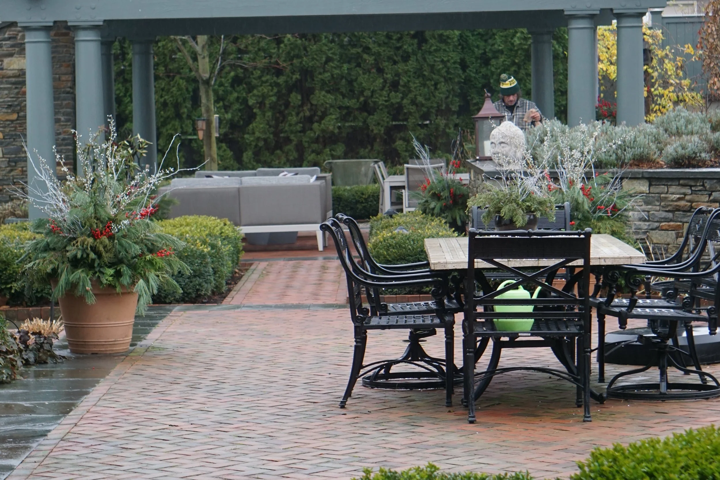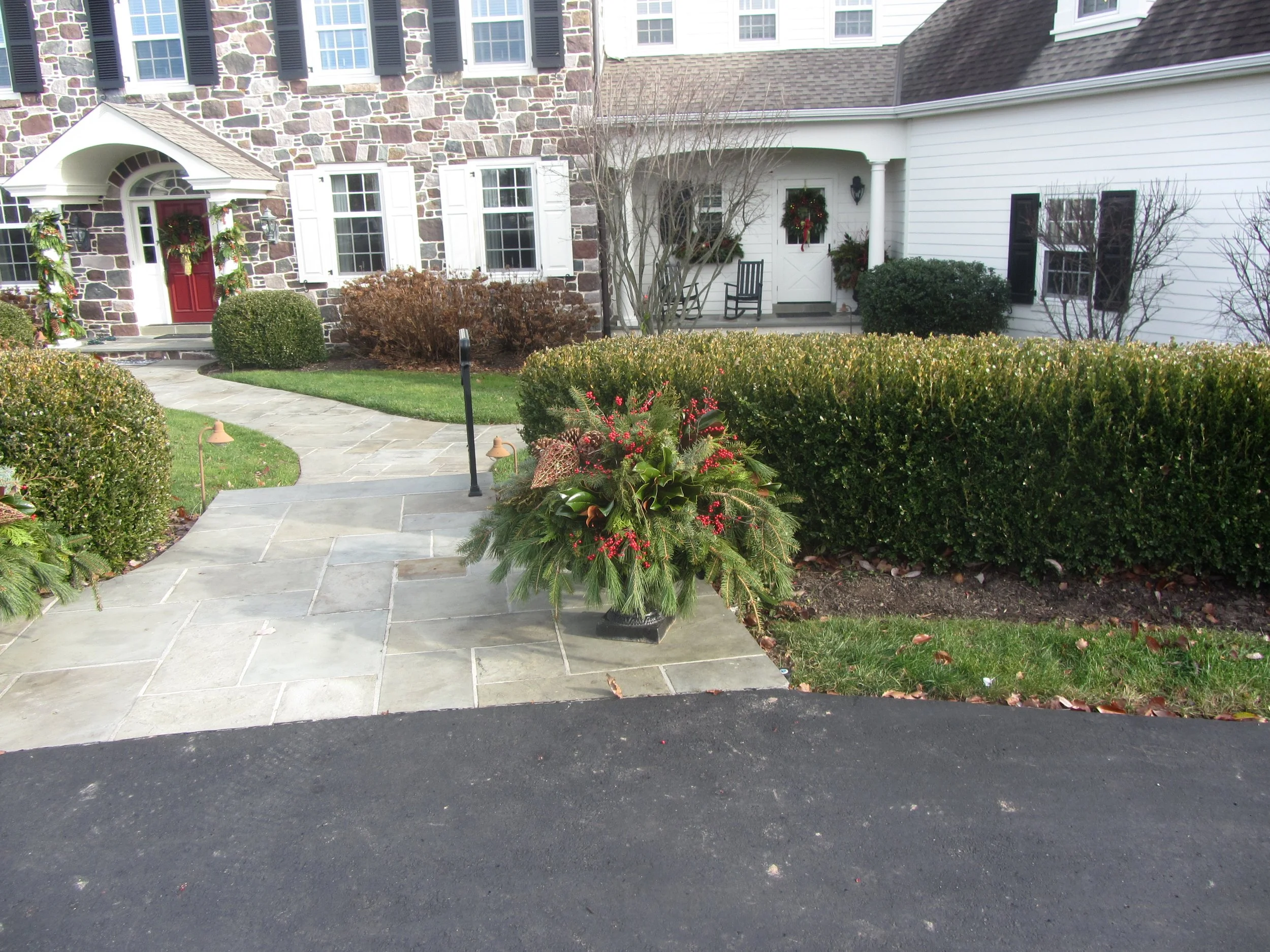 Gina has an Art background and it is noticable in how she puts elements together. She plants all our urns, designs all the annual plantings, Christmas decorating, even Halloween. Her specialty is mixing different colors and textures. Clean, naturalistic and elegant.